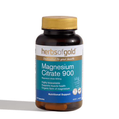 Herbs of Gold Magnesium Citrate 900 is an organic form of magnesium designed to help you maintain healthy muscle contraction function and aid with nervous system health.
