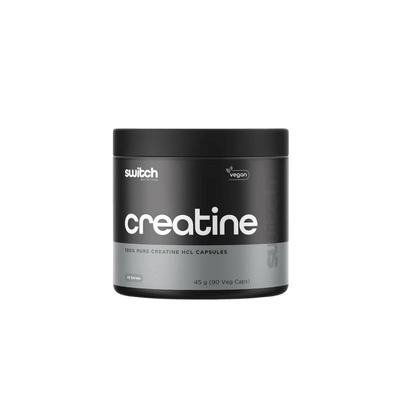 Switch Creatine HCL capsules are a convenient and powerful supplement that you can take to support your training. Creatine HCL is made up of a creatine molecule with hydrochloride attached. Hydrochloride significantly enhances water solubility and absorption, ensuring you get all those great benefits from a small dose. The benefits of Creatine HCL is that it is less likely to cause bloating and water retention than Creatine Monohydrate, it enhances your performance and endurance and it boosts muscle gain and recovery. Take your creatine on the go in Switch's new capsule form so you don't need to worry about mixing and shakers. Try HCL today and see if this is the creatine for you!!
